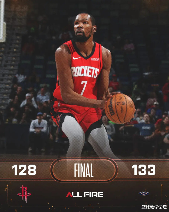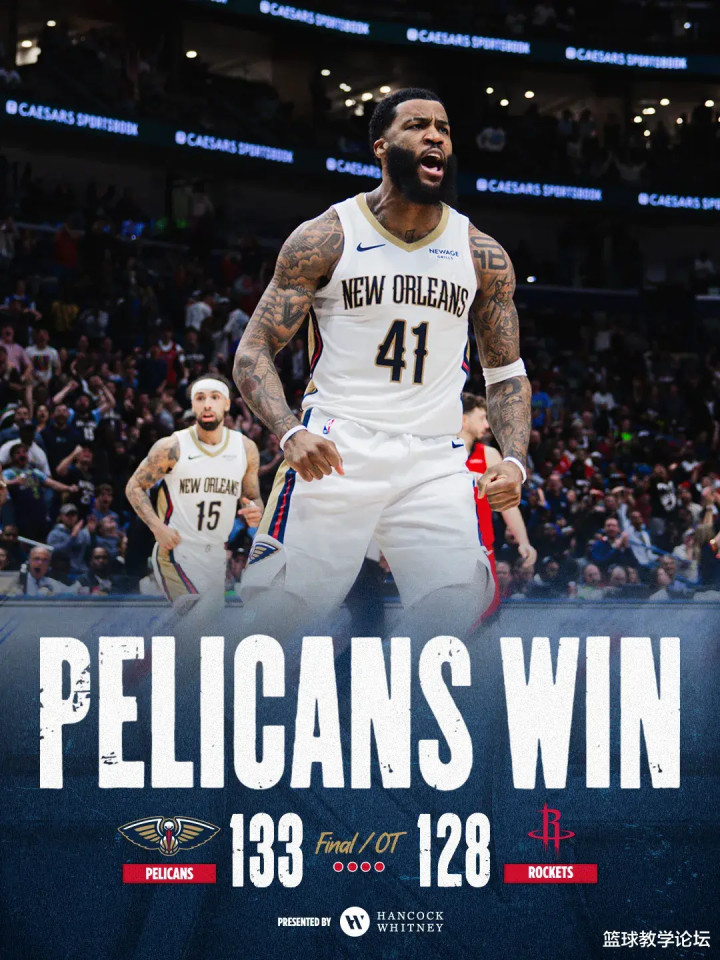 今天这场比赛,本来没什么悬念,火箭最多领先到25分,结果鹈鹕在下半场完成超级逆转。再说一个尴尬的数据:火箭是本赛季唯一胜率在五成以上,却输给鹈鹕的球队。第四节杜兰特5中4拿到9分,到了加时赛只有1次出手。