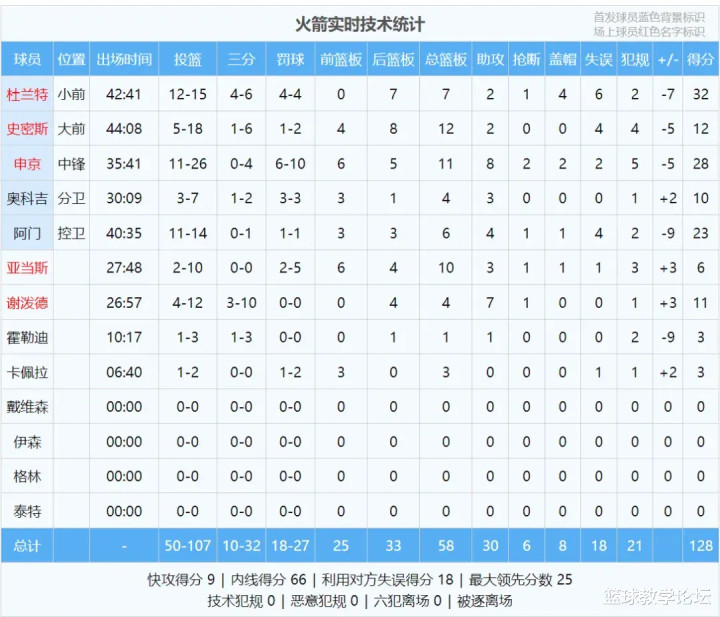 跟上一场打掘金同样的剧情,关键时刻申京太吃球权了,杜兰特几乎拿不到球。此役杜兰特打了42分41秒,15投12中空砍32分7篮板2助攻1抢断4盖帽6失误。阿门14中11砍下23分,他跟杜兰特合计29中23,投篮命中率79.3%。