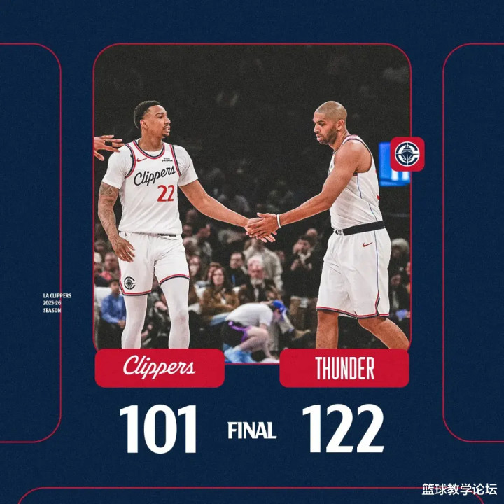 雷霆手握快船2026年首轮签,肯定要把快船往死里揍,雷霆这场大胜在意料之中。亚历山大又是三节打卡,24投13中砍下32分7板6助2断2帽。霍姆格伦22分7板2助、杰伦-威廉姆斯20分5助2断。雷霆新三少合砍74分,太稳定了!
